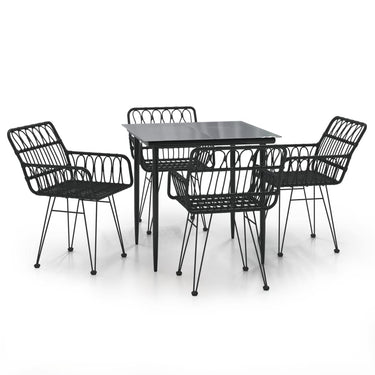 Ensemble à manger de jardin 5 pcs Noir Résine tressée