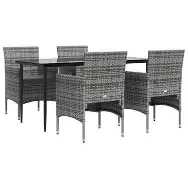 Cet ensemble de salle à manger de jardin, au design élégant et contemporain, est un excellent choix pour manger ou se détendre dans le jardin. Matériau résistant aux intempéries : fabriqué en résine tressée résistante aux intempéries et à l'eau, cet ensemble de salle à manger de jardin est facile à nettoyer, résistant à l'usure et adapté à un usage quotidien.Cadre robuste : les cadres en acier enduit de poudre rendent l'ensemble de salle à manger d'extérieur robuste et stable pour une utilisation quotidienne à l'extérieur.Dessus de table pratique : le dessus lisse de la table de salle à manger est en verre trempé, facile à nettoyer avec un chiffon humide. De plus, le dessus robuste est parfait pour placer des repas, des boissons et d'autres objets décoratifs.Design confortable : conçues avec des dossiers et des accoudoirs incurvés, ces chaises d'extérieur offrent un maximum de confort.Confort supplémentaire : les coussins bien rembourrés offrent un confort ultime pendant votre temps d'assise. Remarque :Afin de prolonger la durée de vie de votre mobilier d'extérieur, nous vous recommandons de le protéger avec une housse imperméable.Chaque produit est livré avec un manuel de montage dans la boîte pour un montage facile.