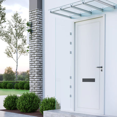 Ce panneau latéral peut être combiné avec un auvent de porte pour présenter la solution la plus simple et la plus économique pour la protection contre le soleil, la pluie, la neige, la grêle, etc.Verre trempé durable : ce panneau latéral pour la verrière de porche est en verre trempé d'une épaisseur de 8 mm, ce qui le rend résistant aux différences de température et aux impacts.Pinces en aluminium : cette pièce latérale pour auvent de porte est équipée de 3 pinces en aluminium pour une fixation facile au mur.Remarque :La livraison ne comprend qu'un seul panneau latéral ; l'auvent de porte n'est pas inclus.