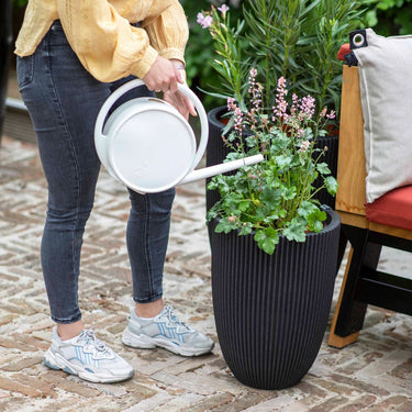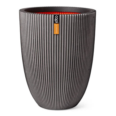 La texture du vase élégant Groove de 34 cm de la marque Capi s'inspire des rainures verticales des roches et des montagnes qui résultent des changements naturels au fil des ans - un processus naturel qui a poussé Capi à développer les lignes solides de ce pot de fleurs texturé. Cette jardinière de la collection Groove est fabriquée avec des matériaux recyclés et avec des méthodes de production climatiquement neutres, pour lesquelles Capi Europe a reçu le prix CO2 Neutral Product and Company en 2020 !Couche isolante : sa conception unique à double paroi isole parfaitement les plantes de la chaleur en été et du gel en hiver, ce qui leur permet de survivre beaucoup plus longtemps ! Cette couche isolante est désignée par l'intérieur orange que l'on voit sur les images et cette couleur représente également leur lieu d'origine.Résistance à la rupture : de plus, cette couche d'isolation supplémentaire offre une fermeté supplémentaire à cette jardinière design, ce qui la rend incassable.Polyvalence : le pot Groove 100 % étanche convient aussi bien à une utilisation à l'intérieur qu'à l'extérieur. Malgré leur extérieur robuste, ces jardinières sont légères, faciles à déplacer et résistantes aux intempéries.1 CONSEILS et ASTUCES: Avant d'utiliser cette jardinière dehors, assurez-vous de percer un trou de drainage de 25 mm dans le fond pour l'évacuation de l'eau.Pour une meilleure gestion de l'eau à l'intérieur du pot, remplissez d'abord 1/3 du pot avec des granulés et vos plantes pousseront mieux. Couvrez le trou de drainage avec un filet.