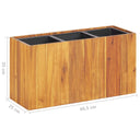 Ce lit surélevé de jardin en bois sera un excellent choix pour les amateurs de jardinage afin de décorer leurs jardins, balcons ou patios. La jardinière a un design simple et ajoutera une touche de couleur naturelle à votre espace de vie extérieur. La jardinière est suffisamment profonde et large pour contenir une grande quantité de sol et offre suffisamment d'espace pour vos plantes, légumes, herbes et fleurs. Fabriqué en bois d'acacia massif avec une finition à l'huile, le pot d'extérieur est résistant aux intempéries et donc très pratique pour une utilisation en plein air. Le fond ouvert assure un bon drainage de l'eau et la respirabilité des plantes. Comprend 1 pot en plastique inséré.