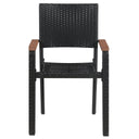 - Matériau : résine tressée, bois d'acacia massif, acier enduit de poudre, verre