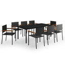 Cet élégant ensemble de salle à manger de jardin est destiné à être le point de mire de votre jardin ou patio ! C'est un excellent choix pour les repas en plein air ou pour vous détendre dans l'espace extérieur ! Les cadres en acier enduit de poudre rendent la table et les chaises robustes et stables pour une utilisation quotidienne en extérieur. Grâce à la résine tressée résistante à l’eau, les chaises sont faciles à nettoyer et résistantes à l'usure. Le dessus de table en verre lisse est facile à nettoyer avec un chiffon humide et parfait pour placer les repas, les boissons et autres articles décoratifs. Remarque : afin de prolonger la durée de vie des meubles d'extérieur, nous vous recommandons de les protéger avec une housse imperméable.
