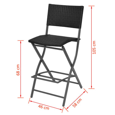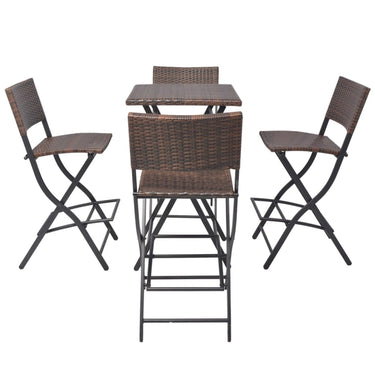 Cet ensemble de bar d'extérieur en rotin sera un excellent accessoire à votre jardin ou votre patio. Il peut également être utilisé comme un ensemble de salle à manger. Cet ensemble de bar est fait de rotin synthétique résistant aux intempéries et à l'eau, ce qui le rend facile à nettoyer, résistant et adapté à un usage quotidien. La table et les chaises ont un cadre en acier enduit de poudre robuste et durable. Grâce à la construction légère, tous les articles sont faciles à déplacer. Les tabourets de bar ont des repose-pieds intégrés pour s'ajouter à leur confort d'assise. La table et les tabourets peuvent être facilement pliés lorsqu'ils ne sont pas utilisés, économisant ainsi beaucoup d'espace de rangement. La livraison comprend 1 table de bar pliante et 4 chaises de bar pliantes. L'assemblage est facile. Remarque : Nous vous recommandons de couvrir l'ensemble pendant la pluie, la neige ou le gel.