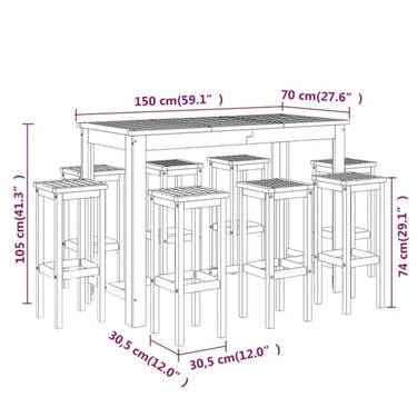 Ensemble de bar de jardin 7 pcs bois d'acacia solide