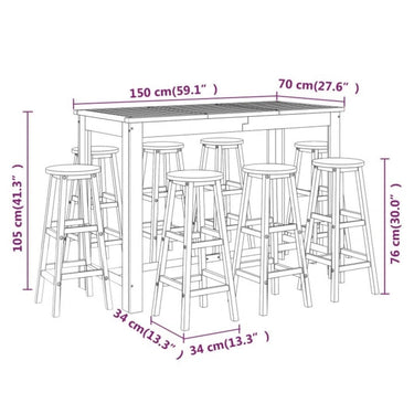 Ensemble de bar de jardin 9 pcs Bois d'acacia solide
