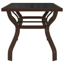 Cette table de jardin classique, alliant style et fonctionnalité, est une excellente pièce maîtresse de votre espace extérieur. Matériau haut de gamme : cette table à manger avec un dessus en verre trempé est dotée de pieds en acier enduit de poudre, ce qui donne à la table une stabilité optimale.Cadre robuste : le cadre en acier rend cette table d'extérieur robuste et durable, offrant un service durable.Pieds de table élégants : les pieds de la table de patio sont élégamment fabriqués, avec des détails dynamiques courbés et assurant sa solidité et sa beauté. C'est pourquoi il s'agit d'une pièce remarquable pour votre extérieur. Remarque :Afin de prolonger la durée de vie de votre mobilier d'extérieur, nous vous recommandons de le protéger avec une housse imperméable.