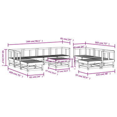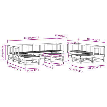 Salon de jardin 11 pcs Gris Bois de pin massif