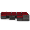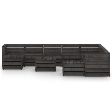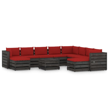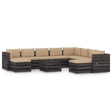 Salon de jardin 11 pcs avec coussins gris bois imprégné