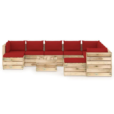 Ensemble de salon 11 pièces avec coussins en bois imprégné