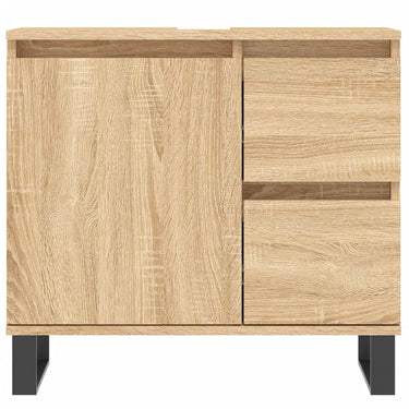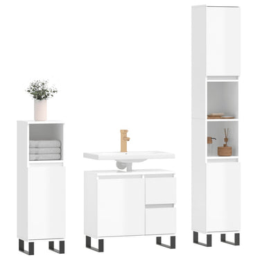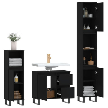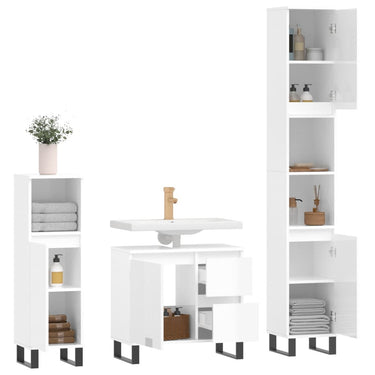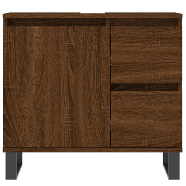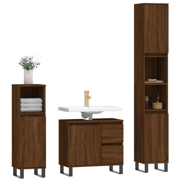 Cet ensemble de meubles de salle de bain tendance est un excellent supplément à votre salle de bain, ce qui lui donne une apparence ordonnée et saisissante ! Matériau durable : le bois d'ingénierie est d'une qualité exceptionnelle avec une surface lisse et présente également résistance, stabilité et résistance à l'humidité. Pieds en fer : les pieds en fer ajoutent un style moderne et calme à votre intérieur tout en assurant la stabilité.Grand espace de rangement : l'armoire de salle de bain offre diverses options de rangement et un espace spacieux pour ranger des articles dans votre salle de bain. Design pratique : le dessus du meuble-lavabo de salle de bain est idéal pour placer le lavabo. Attention :Pour éviter qu'il ne soit renversé, ce produit doit être utilisé avec le dispositif de fixation au mur fourni. Bon à savoir :Le lavabo n'est pas inclus dans la livraison.Les vis et les chevilles pour l'intérieur du mur ne sont pas incluses. Nous vous conseillons de trouver et d'utiliser des vis et des chevilles adaptées spécifiquement à vos murs. Si vous n'êtes pas sûr, vous pouvez consulter un professionnel. Veuillez lire et suivre chaque étape des instructions.
