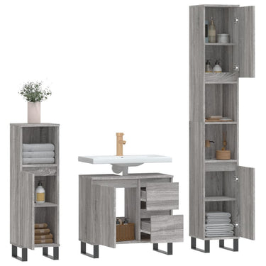 Ensemble de meubles de salle de bain 3 pcs Sonoma gris
