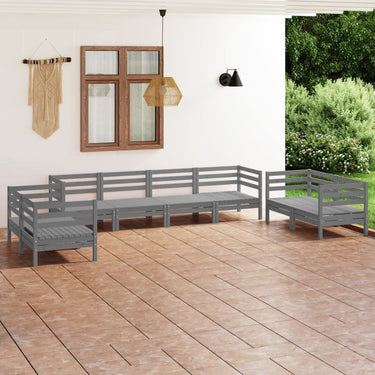 Salon de jardin 8 pcs Gris Bois de pin massif