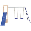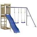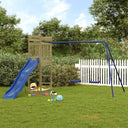 Vous voulez donner à vos enfants la liberté de jouer à la maison ? Cet ensemble de jeu d'extérieur en bois transforme votre jardin en un terrain de jeu propice aux aventures imaginatives ! Matériau durable : cette aire de jeux est fabriquée en bois de pin imprégné sous vide. Le bois de pin massif est un matériau naturel magnifique. Le bois de pin a un grain droit et les nœuds lui confèrent un aspect rustique caractéristique. L'imprégnation est un processus de conservation réalisé à l'aide d'autoclaves. Le traitement sous pression augmente la résistance à la pourriture et aux intempéries.Cadre robuste et stable : le cadre en bois de l'équipement d'aire de jeux assure la robustesse et la stabilité. De plus, les pieds en forme de A de la balançoire pour enfants permettent de garder l'équilibre.Centres multi-activités : l'aire de jeux en bois est dotée d'une plate-forme de 118 cm de hauteur et se distingue par son toboggan ondulé, une double balançoire et un bac à sable. Vos enfants peuvent également inviter leurs amis à s'amuser.Conception réfléchie : les garde-corps en bois qui l'entourent sont conçus pour assurer la sécurité des enfants pendant leurs jeux.Plaisir sans fin : cette aire de jeux en bois amusante est le moyen idéal pour vos enfants et leurs amis de se divertir, d'avoir plus de temps interactif et de créer des souvenirs pour vous et vos enfants ! Attention :Uniquement pour un usage domestiqueUtilisation extérieureNe convient pas aux enfants de moins de 3 ans Âge recommandé : 3-8 ans Remarque :Le produit doit être ancré afin de réduire les risques de basculement. Les ancres sont incluses.