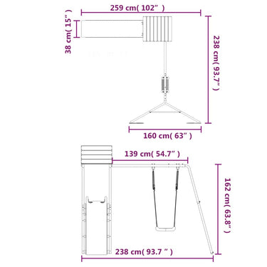 Vous voulez donner à vos enfants la liberté de jouer à la maison ? Cet ensemble de jeu d'extérieur en bois transforme votre jardin en un terrain de jeu propice aux aventures imaginatives ! Matériau durable : ce cadre d'escalade avec toboggan est fabriqué en bois de pin imprégné sous vide. Le bois de pin massif est un matériau naturel magnifique. Le bois de pin a un grain droit et les nœuds lui confèrent un aspect rustique caractéristique. L'imprégnation est un processus de conservation réalisé à l'aide d'autoclaves. Le traitement sous pression augmente la résistance à la pourriture et aux intempéries. Cadre robuste et stable : le cadre en bois du cadre d'escalade de jardin assure la robustesse et la stabilité. De plus, les pieds en forme de A de la balançoire pour enfants permettent de garder l'équilibre.Centres multi-activités : le cadre d'escalade est doté d'une plate-forme de 90 cm de hauteur et se distingue par son toboggan ondulé, une balançoire et un bac à sable. Vos enfants peuvent également inviter leurs amis à s'amuser. Conception réfléchie : le toit en bois offre de l'ombre à vos enfants pendant les chaudes journées d'été. Plaisir sans fin : cette maisonnette de jeu extérieure en bois est le moyen idéal pour vos enfants et leurs amis de se divertir, d'avoir plus de temps interactif et de créer des souvenirs pour vous et vos enfants ! Attention :Uniquement pour un usage domestiqueUtilisation extérieure Ne convient pas aux enfants de moins de 3 ans Âge recommandé : 3-8 ans Remarque :Le produit doit être ancré afin de réduire les risques de basculement. Les ancrages ne sont pas inclus. Bon à savoir :Pour faciliter au maximum le montage, chaque produit est livré avec des instructions.