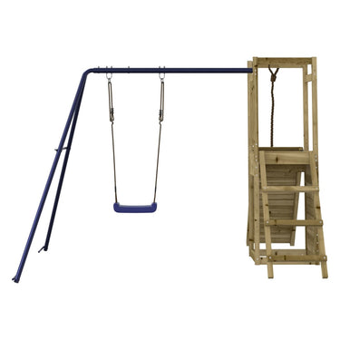Vous voulez donner à vos enfants la liberté de jouer à la maison ? Cet ensemble de jeu d'extérieur en bois transforme votre jardin en un terrain de jeu propice aux aventures imaginatives ! Matériau durable : ce cadre d'escalade de jardin est fabriqué en bois de pin massif. Le pin massif est un matériau naturel magnifique. Le bois de pin a un grain droit et les nœuds lui confèrent son aspect rustique caractéristique.Cadre robuste et stable : le cadre en bois du cadre de jeu de jardin assure la robustesse et la stabilité. De plus, les pieds en forme de A de la balançoire pour enfants permettent de garder l'équilibre.Centres multi-activités : le cadre d'escalade est doté d'une plate-forme de 90 cm de hauteur et se distingue par son mur d'escalade avec une corde, un mur d'escalade, une balançoire simple et un bac à sable. Vos enfants peuvent également inviter leurs amis à s'amuser.Conception réfléchie : les garde-corps en bois qui l'entourent sont conçus pour assurer la sécurité des enfants pendant leurs jeux.Plaisir sans fin : cette maisonnette de jeu extérieure en bois est le moyen idéal pour vos enfants et leurs amis de se divertir, d'avoir plus de temps interactif et de créer des souvenirs pour vous et vos enfants ! Attention :Uniquement pour un usage domestiqueUtilisation extérieureNe convient pas aux enfants de moins de 3 ansÂge recommandé : 3-8 ansPoids maximal par utilisateur : 45 kg Remarque :Le produit doit être ancré afin de réduire les risques de basculement. Les ancrages ne sont pas inclus. Bon à savoir :Pour faciliter au maximum le montage, chaque produit est livré avec des instructions.