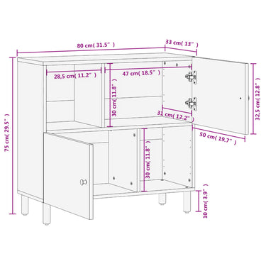 Armoire latérale 80x33x75 cm bois massif de manguier