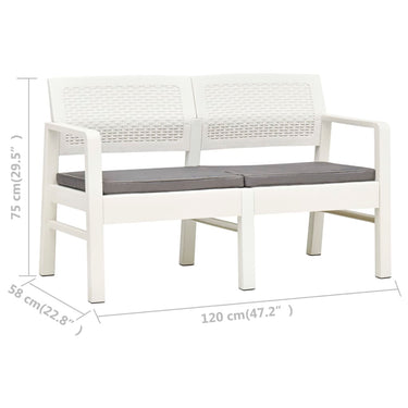 Banc de jardin à 2 places et coussins 120 cm Plastique Blanc