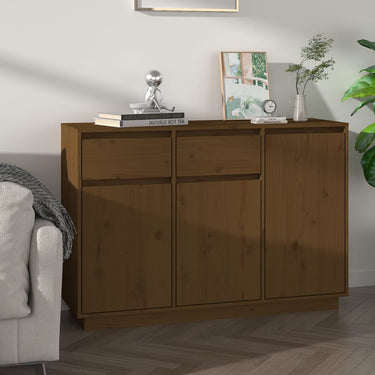 Ce buffet en bois classique, au look intemporel, est conçu pour être un excellent supplément à votre maison. Matériau de première qualité : le bois de pin massif est un matériau naturel magnifique. Le bois de pin a un grain droit et les nœuds donnent au matériau son aspect caractéristique et rustique.Grand espace de rangement : avec 2 tiroirs et 3 portes, l'armoire offre un grand espace de rangement pour garder vos différents éléments essentiels quotidiens bien organisés et facilement accessibles.Cadre robuste et stable : le cadre en bois assure robustesse et stabilité.Fonction d'affichage : le dessus du placard est idéal pour exposer vos objets décoratifs, albums photo ou petites plantes. Attention :Afin d'éviter le renversement, ce produit doit être utilisé avec le dispositif de fixation murale fourni.
