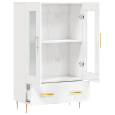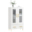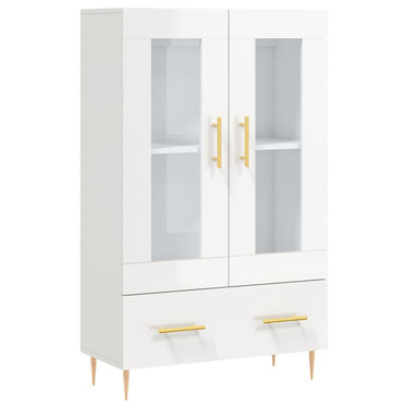 Cherchez-vous un buffet haut de gamme stylé ? Ce buffet haut ajoute un charme moderne à votre intérieur existant ! Matériau durable : le bois d'ingénierie est d'une qualité exceptionnelle avec une surface lisse et présente également résistance, stabilité et résistance à l'humidité. Pieds en métal : les pieds en métal ajoutent un style moderne et calme à votre intérieur tout en assurant la stabilité. Grand espace de rangement : le buffet offre un grand espace de rangement pour garder vos différents articles essentiels quotidiens bien organisés et facilement accessibles. Dessus stable et robuste : le dessus de l'armoire de rangement est parfait pour exposer vos objets décoratifs, cadres photo et plantes en pot. Design pratique : vos articles sont visibles derrière la porte vitrée et en même temps protégés de la poussière. De plus, les poignées facilitent l'ouverture de l'armoire latérale. Attention :Pour éviter qu'il ne soit renversé, ce produit doit être utilisé avec le dispositif de fixation au mur fourni.