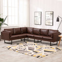 Ce canapé d'angle en similicuir est le mélange parfait de confort et de sophistication et sera un excellent ajout à n'importe quelle maison ou bureau. Les coussins de siège épais et les oreillers de dossier sont très confortables, tandis que la structure élégante est robuste et durable. Le cuir PVC est facile à nettoyer et résistant à l'usure. Ce produit est facile à assembler.