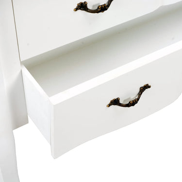 Ajoutez une touche d'élégance avec notre buffet classique ! Ce buffet de style français offre un grand espace de rangement. Il sera à la fois pratique et décoratif dans votre salon, chambre à coucher ou entrée. Le meuble latéral de style français est fait de bois solide qui a reçu une finition de peinture, ce qui lui donne un aspect raffiné et le rend facile à nettoyer avec un chiffon humide. Le meuble en bois a deux tiroirs. De plus, ces poignées classiques ajoutent au style vintage du meuble de rangement. Le produit doit être assemblé. Redécorez votre intérieur avec notre buffet simple mais élégant !