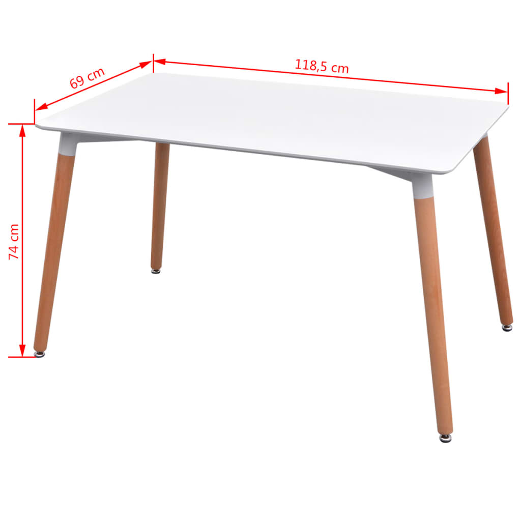 - Materiaal: MDF tafelblad en beukenhouten poten