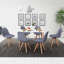 De eettafel en eetkamerstoelen hebben beukenhouten poten wat ze erg duurzaam maakt. Het sterke MDF tafelblad is makkelijk schoon te maken met een vochtige doek. De zitting van de stoelen is stof van hoogwaardige kwaliteit en gevoerd voor extra comfort.