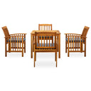 Ensemble à manger de jardin 5 pcs avec coussins Acacia solide