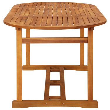 Créez une esthétique convaincante et uniforme dans votre espace extérieur avec cet ensemble de salle à manger de jardin en bois ! Cet ensemble de salle à manger d'extérieur est fabriqué en bois d'acacia massif, un bois dur tropical, qui est résistant aux intempéries et durable pour des années d'utilisation. La surface finie à l'huile est facile à nettoyer avec un chiffon humide. De plus, les chaises de patio peuvent être pliées dans un format compact pour économiser de l'espace lorsqu'elles ne sont pas utilisées. Remarque : afin de prolonger la durée de vie des meubles d'extérieur, nous vous recommandons de les protéger avec une housse imperméable.