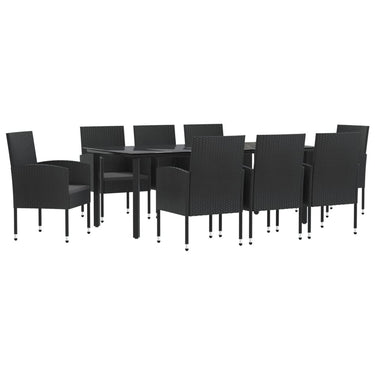 Ensemble à manger de jardin 9 pcs noir résine tressée et acier