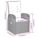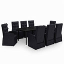 Cet élégant ensemble de salle à manger de jardin est destiné à être le point de mire de votre jardin ou patio ! C'est un excellent choix pour les repas en plein air ou pour vous détendre dans l'espace extérieur ! Les cadres en acier enduit de poudre rendent la table et les chaises robustes et stables pour une utilisation quotidienne à l'extérieur. Grâce à la résine tressée résistante à l'eau, les chaises sont faciles à nettoyer et résistantes à l'usure. Le dossier peut être ajusté en tirant sur le bouton sur le côté. Grâce à leur construction légère, elles sont faciles à déplacer. Les coussins de siège bien rembourrés ajoutent également un confort supplémentaire. Les housses en polyester nécessitant peu d'entretien peuvent être retirées et lavées. De plus, le dessus de table en verre lisse est facile à nettoyer avec un chiffon humide et parfait pour ranger des repas, des boissons et d'autres articles décoratifs. Remarque : afin de prolonger la durée de vie des meubles d'extérieur, nous vous recommandons de les protéger avec une housse imperméable.