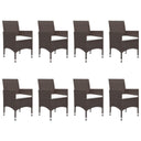Ensemble à manger de jardin avec coussins 9 pcs marron