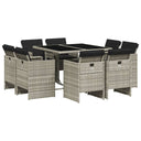 Cet ensemble de salle à manger de jardin est un excellent choix pour les repas en plein air ou pour vous détendre dans le jardin, dans l'arrière-cour ou sur la terrasse. Matériau durable : la résine tressée, également connue sous le nom de poly rotin, est un matériau synthétique solide et nécessitant peu d'entretien qui ressemble au rotin naturel. Il est léger, facile à nettoyer et couramment utilisé pour les meubles d'extérieur en raison de sa durabilité et de ses propriétés de résistance aux intempéries.Rangement compact : ces chaises sont dotées d'un dossier rabattable, ce qui permet de les ranger facilement sous la table. Une fois pliées, elles se rangent parfaitement sous la table, formant un cube peu encombrant. Expérience d'assise confortable : ce mobilier d'extérieur, doté de coussins épais, offre une expérience d'assise confortable.Housse amovible et lavable : ces coussins de siège sont dotés de housses amovibles pour un lavage et un entretien faciles.Dessus en verre : le dessus de la table d'extérieur est fabriqué en verre trempé solide et durable, ce qui le rend facile à nettoyer avec un chiffon humide et ajoute une touche d'élégance à votre espace extérieur. Bon à savoir : Pour que vos meubles d'extérieur restent beaux, nous vous recommandons de les protéger avec une housse imperméable.