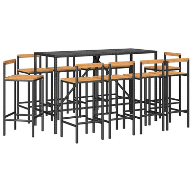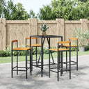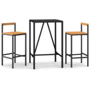 Ensemble de bar jardin 5 pcs noir poly rotin/bois massif acacia