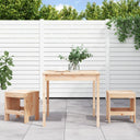 Cet ensemble de bistro de jardin en bois vous permet de passer des moments agréables et confortables avec votre famille et vos amis. Bois de pin massif : cet ensemble de bistro est fabriqué en bois de pin massif. Le bois de pin massif est un matériau naturel magnifique. Le bois de pin a un grain droit et les nœuds donnent au matériau son aspect caractéristique et rustique.Dessus robuste : la table de jardin de l'ensemble de bistro d'extérieur est dotée d'un dessus robuste, parfait pour placer vos boissons, aliments et autres objets décoratifs.Design pratique : ces tabourets de bar en bois n'ont pas de dossier, vous pouvez donc vous asseoir confortablement de chaque côté des tabourets et les ranger sous le comptoir lorsqu'ils ne sont pas utilisés.Nombreuses applications : avec son design minimaliste, l'ensemble de bistro de terrasse peut être intégré dans n'importe quel coin du jardin, terrasse, balcon, jardin, etc. Bon à savoir :Pour que vos meubles d'extérieur restent beaux, nous vous recommandons de les protéger avec une housse imperméable.