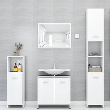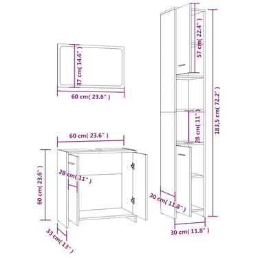 Cet ensemble de meubles de salle de bain élégant de 3 pièces, avec un espace de rangement spacieux, est un excellent supplément à votre salle de bain, ce qui lui donne un aspect soigné et impressionnant ! Matériau pratique : le bois d'ingénierie est d'une qualité exceptionnelle avec une surface lisse et présente également résistance, stabilité et résistance à l'humidité.Grand espace de rangement : cette armoire à miroir de salle de bain offre un grand espace de rangement pour garder vos articles de buanderie, articles de toilette et autres articles bien organisés et à portée de main. Vous pouvez créer et utiliser de manière optimale un espace de rangement supplémentaire dans votre salle de bain.Miroir utilitaire : l'armoire de salle de bain avec miroir est parfaite pour votre routine beauté quotidienne. Le miroir vous permet de prendre soin de la peau de votre visage et de vous maquiller aussi !Design élégant : les lignes épurées et le design élégant font que cette armoire de lavabo de salle de bain s'intègre parfaitement dans votre salle de bain. Attention :Afin d'éviter qu'il ne bascule, ce produit doit être utilisé avec le dispositif de fixation murale fourni. Remarque :Les vis et les chevilles pour l'intérieur du mur ne sont pas incluses. Recherchez et utilisez des vis et des chevilles adaptées à vos murs. Si vous n'êtes pas sûr, demandez conseil à un professionnel. Lisez et suivez attentivement chaque étape des instructions.Chaque produit est livré avec un manuel de montage dans la boîte pour un montage facile.