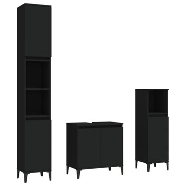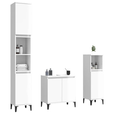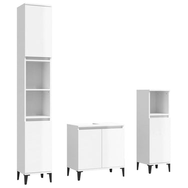 Cet ensemble de meubles de salle de bain, avec un espace de rangement spacieux, est un excellent supplément à votre salle de bain, ce qui lui donne une apparence ordonnée et saisissante ! Matériau durable : le bois d'ingénierie est d'une qualité exceptionnelle avec une surface lisse et présente également résistance, stabilité et résistance à l'humidité.Grand espace de rangement : ces armoires de salle de bain offrent un grand espace de rangement pour garder vos fournitures de salle de bain bien organisées.Pieds en métal : les pieds en métal ajoutent un style moderne et calme à votre intérieur tout en assurant la stabilité.Surface facile à nettoyer : l'ensemble de salle de bain est facile à nettoyer avec un chiffon humide.Design élégant : les lignes épurées et le design élégant se fondent parfaitement dans votre salle de bain. Attention :Pour éviter qu'il ne soit renversé, ce produit doit être utilisé avec le dispositif de fixation au mur fourni. Bon à savoir :Les vis et les chevilles pour l'intérieur du mur ne sont pas incluses. Nous vous conseillons de trouver et d'utiliser des vis et des chevilles adaptées spécifiquement à vos murs. Si vous n'êtes pas sûr, vous pouvez consulter un professionnel. Veuillez lire et suivre chaque étape des instructions.