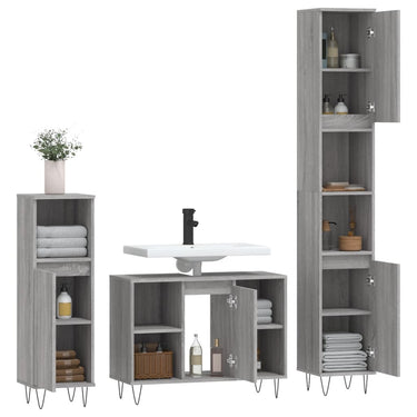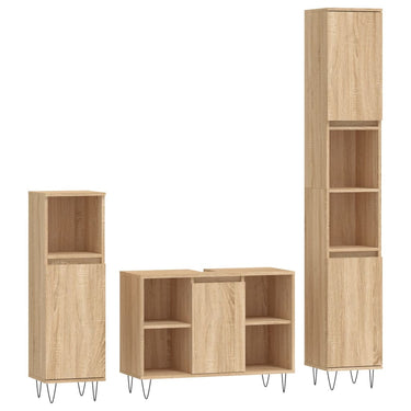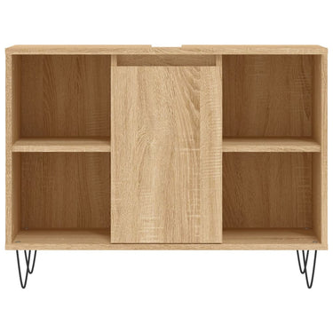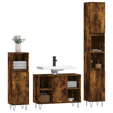 Cet ensemble de meubles de salle de bain tendance est un excellent supplément à votre salle de bain, ce qui lui donne une apparence ordonnée et saisissante ! Matériau durable : le bois d'ingénierie est d'une qualité exceptionnelle avec une surface lisse et présente également résistance, stabilité et résistance à l'humidité. Pieds en fer : les pieds en fer ajoutent un style moderne et calme à votre intérieur tout en assurant la stabilité.Grand espace de rangement : l'armoire de salle de bain offre diverses options de rangement et un espace spacieux pour ranger des articles dans votre salle de bain. Design pratique : le dessus du meuble-lavabo de salle de bain est idéal pour placer le lavabo. Attention :Pour éviter qu'il ne soit renversé, ce produit doit être utilisé avec le dispositif de fixation au mur fourni. Bon à savoir :Le lavabo n'est pas inclus dans la livraison.Les vis et les chevilles pour l'intérieur du mur ne sont pas incluses. Nous vous conseillons de trouver et d'utiliser des vis et des chevilles adaptées spécifiquement à vos murs. Si vous n'êtes pas sûr, vous pouvez consulter un professionnel. Veuillez lire et suivre chaque étape des instructions.