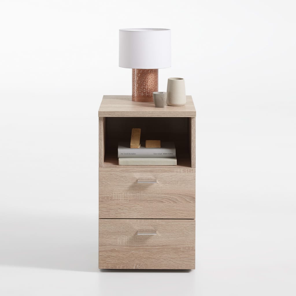FMD Nachtkastje met 2 lades en open schap eikenkleur