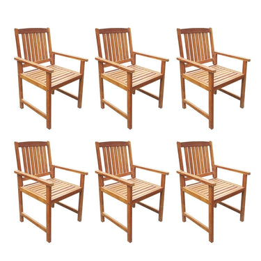 Cet ensemble de mobilier de jardin en bois de 7 pièces se compose d'un table et de 6 chaises et deviendra le point central de votre jardin ou patio. Cet ensemble de salle à manger durable est fait de bois d'acacia massif, ce qui le rend robuste et facile à nettoyer. Grâce au trou au centre de la table, vous pouvez facilement placer un parasol pour créer de l'ombre. La livraison comprend 1 table et 6 chaises.