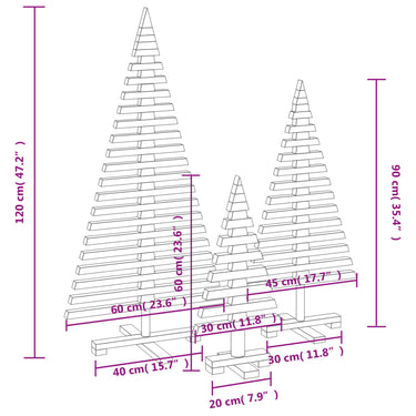 Kerstdecoraties kerstboom 3 st massief grenenhout