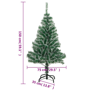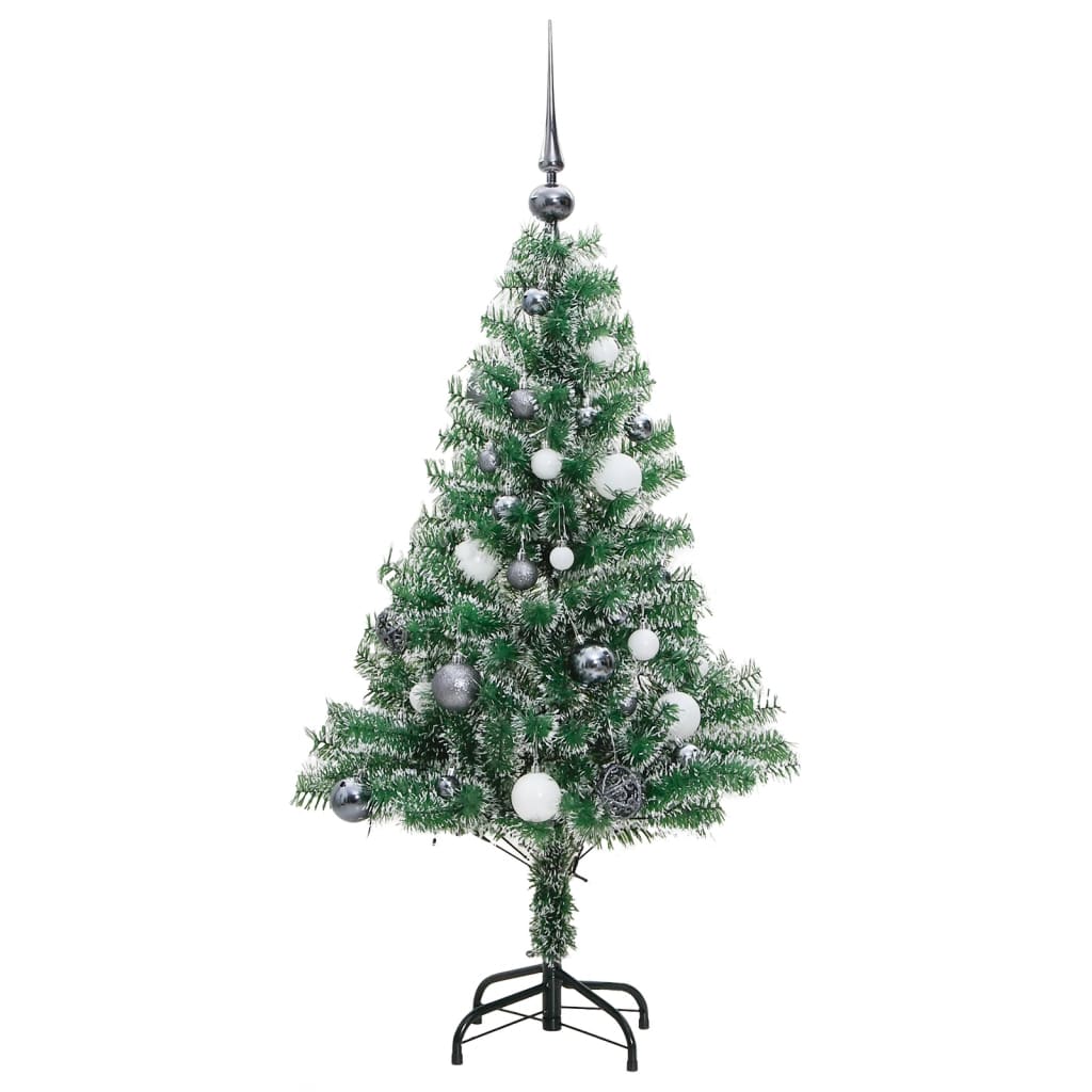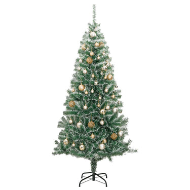 Kunstkerstboom met 300 LED's kerstballen en sneeuw 210 cm