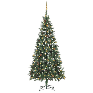 Arbre de Noël artificiel pré-éclairé/boules pommes de pin 210cm