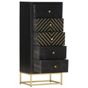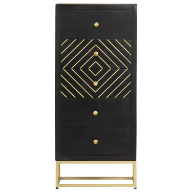 Armoire à tiroirs Noir et doré 45x30x105 cm Bois de manguier
