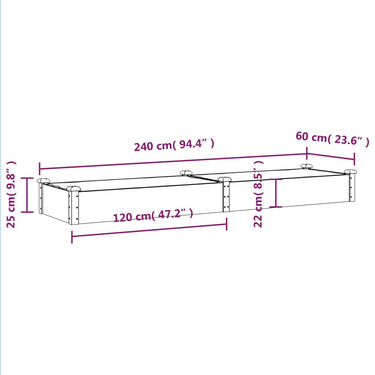 Lit surélevé de jardin doublure 240x60x25 cm bois massif sapin