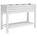 Avec ce lit surélevé de jardin, vous pouvez créer un superbe espace vert sur votre porche, votre terrasse ou votre balcon. Matériau durable : le polypropylène (PP) est un plastique populaire qui est également l'un des matériaux les plus utilisés dans les meubles d'extérieur. Il est léger, solide et résistant aux chocs. De plus, sa résistance aux rayons UV et aux intempéries le rend facile à nettoyer et à entretenir.Système d'arrosage pratique : la jardinière est dotée d'un système d'arrosage automatique qui maintient le sol humide pour aider les plantes à prospérer lorsqu'elles sont laissées sans eau pendant un certain temps. Grâce à l'indicateur d'eau pratique, vous pouvez toujours créer un climat optimal pour vos plantes - jamais trop humide ni trop sec.Conception pratique : le réservoir d'eau interne assure aux plantes un apport d'eau constant pendant plusieurs jours et évite en même temps l'engorgement. Un robinet de vidange permet d'évacuer l'eau excédentaire.Texture imitation bois : le bac à plantes présente une texture imitation bois qui ajoute une touche de charme naturel à votre espace de vie extérieur.Hauteur optimale : le lit surélevé, doté d'une hauteur de travail ergonomique optimale, vous permet de vous tenir debout ou de vous asseoir confortablement devant le bac à fleurs, et protège vos genoux et votre dos.Grand espace de rangement : le pot de jardin est doté d'une profonde boîte à fleurs qui offre un vaste espace de plantation pour les légumes, les herbes, les fleurs et les plantes. De plus, l'étagère inférieure permet de ranger la terre de rempotage et les accessoires pour plantes à portée de main.
