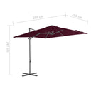 Cet élégant parasol suspendu est parfait pour créer de l'ombre et vous protéger des rayons UV nocifs. Fabriquée en polyester anti-UV et anti-décoloration, la toile de parasol vous offre une protection optimale contre le soleil et est facile à nettoyer. Il comporte une base croisée robuste pour ajouter de la stabilité. Le design exclusif de ce parasol vous permet de l'incliner et de le faire pivoter sur 360 degrés pour bloquer le soleil. Le poteau en acier robuste, ainsi que les 8 nervures durables, rendent le parasol très stable et durable. Ce parasol de jardin peut être facilement ouvert et fermé grâce au mécanisme à manivelle. Veuillez noter que nous vous recommandons de traiter le tissu du parasol avec un spray imperméabilisant s'il est soumis à des fortes précipitations.
