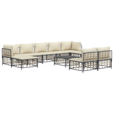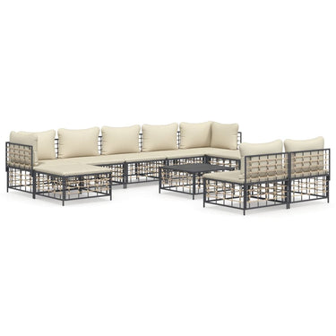 Salon de jardin 10 pcs avec coussins anthracite résine tressée