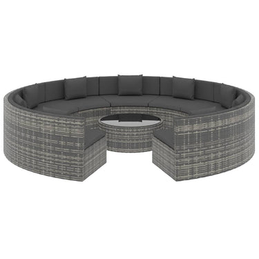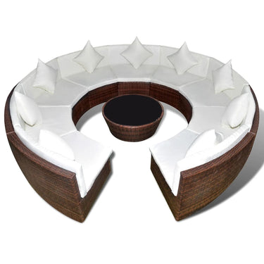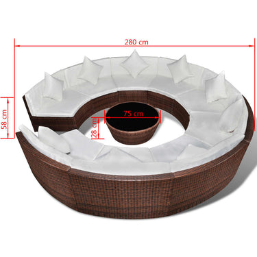 Cet ensemble de canapés en rotin, rond, combine le style et la fonctionnalité et va devenir le point central de votre jardin ou patio. Le mobilier entier est conçu pour être utilisé à l'extérieur toute l'année. Grâce au rotin synthétique résistant aux intempéries et à l'eau, l'ensemble de salon est facile à nettoyer, résistant et adapté à un usage quotidien. L'ensemble de siège comporte un cadre en acier enduit de poudre vigoureux, qui est fortement durable. Il est également léger et modulaire, ce qui le rend facile à déplacer en fonction de n'importe quelle installation. Cet ensemble est livré avec des coussins d'assise et de dossier très confortables, bien rembourrés. Les housses des coussins sont amovibles et lavables. La livraison comprend 9 segments de canapé, 1 table basse, 9 oreillers et 18 coussins. Remarque: nous vous recommandons de couvrir l'ensemble pendant la pluie, la neige et le gel.